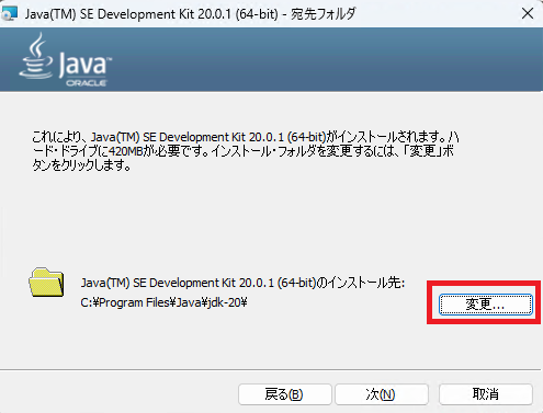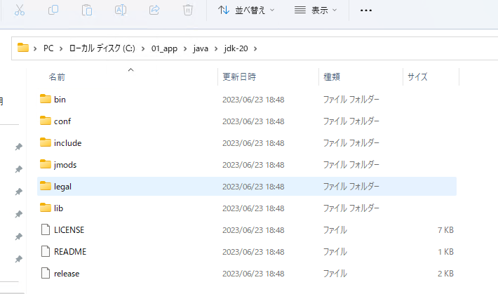 ※インストール先は「C:\01_app\java\jdk-20」としました。