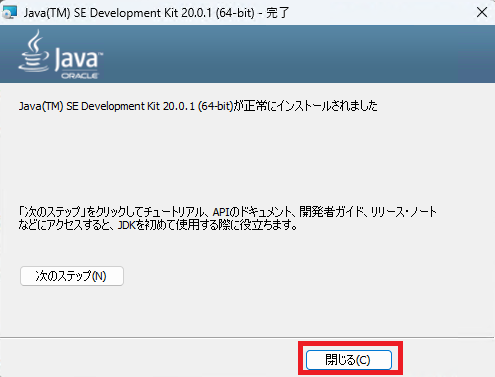 これでJavaのインストールは完了です。