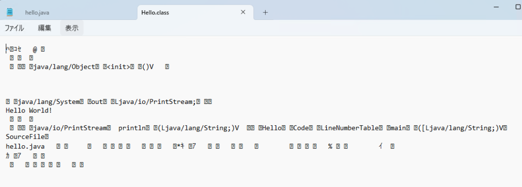 これは、コンパイルされたclassファイルは「バイナリファイル」と言われ、